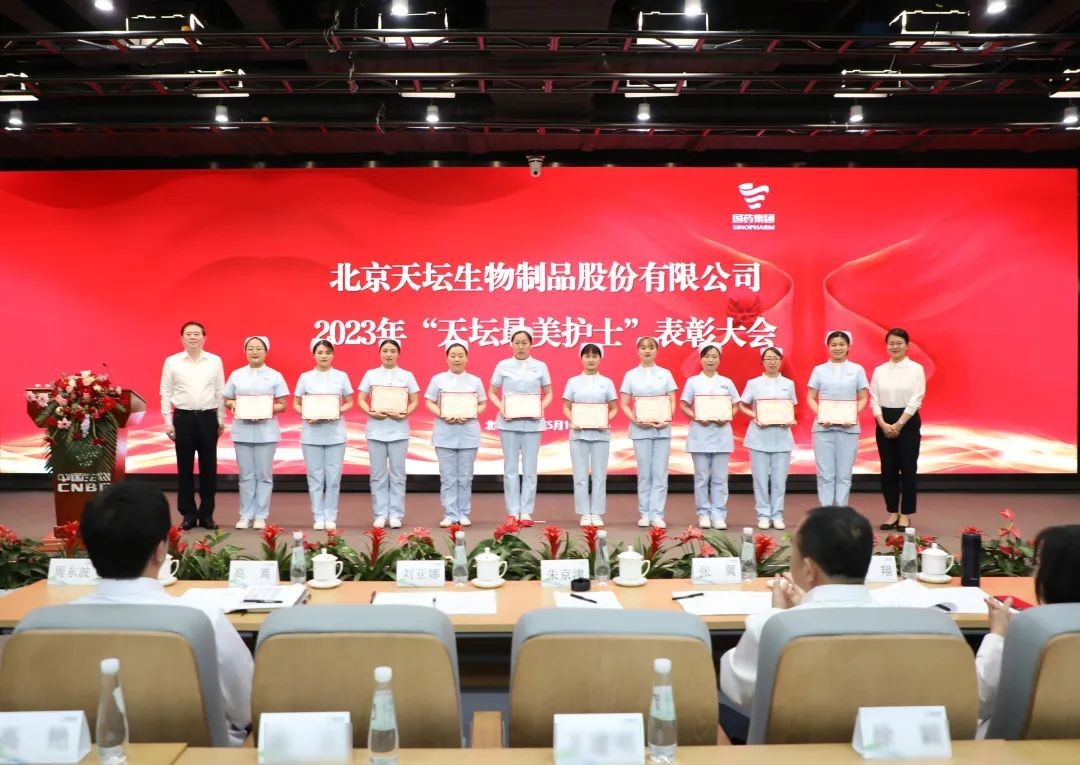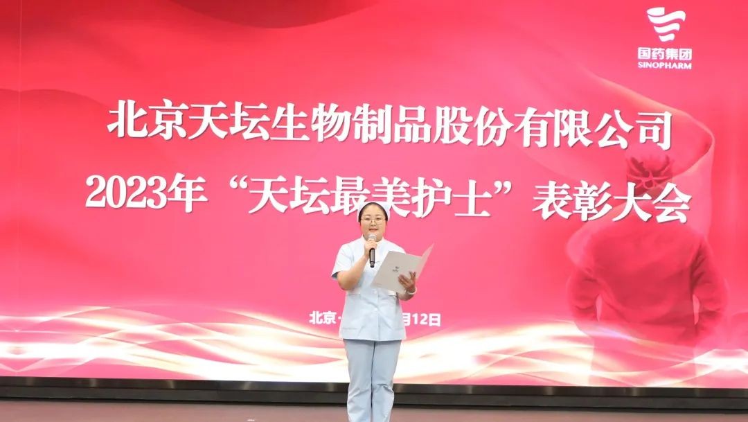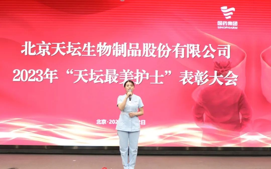 5月12日,2023年“天壇最美護(hù)士”表彰大會在北京舉行。中國生物黨委書記朱京津,天壇生物總經(jīng)理付道興,黨委書記劉亞娜,副總經(jīng)理何彥林,副總經(jīng)理兼財務(wù)總監(jiān)張翼,紀(jì)委書記高嵩出席會議。天壇生物常務(wù)副總經(jīng)理周東波主持會議。