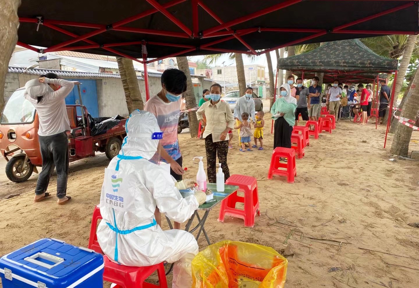 8月7日凌晨3點(diǎn),參加完當(dāng)?shù)匦l(wèi)健委全員核酸檢測工作部署會(huì)后,臨高漿站立即協(xié)調(diào)了人員和物資。8月7日清晨6點(diǎn),12名漿站工作人員,已提前到達(dá)臨城鎮(zhèn)2個(gè)采樣點(diǎn),迅速換上防護(hù)服,投入到緊張的采樣工作中。