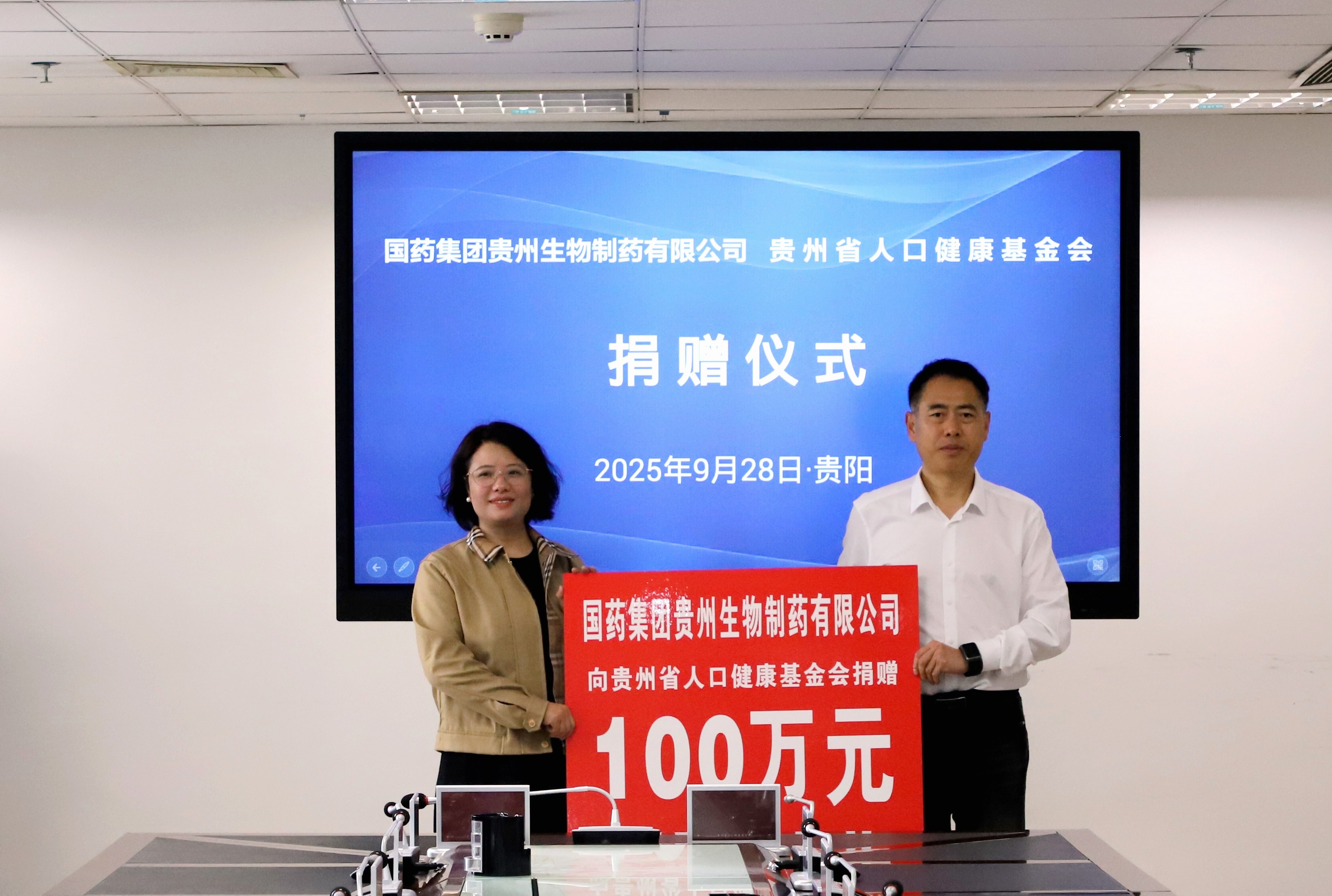 9月28日,北京天壇生物制品股份有限公司所屬國藥集團(tuán)貴州生物制藥有限公司(簡稱“國藥天壇貴州”)向貴州省人口健康基金會(huì)捐贈(zèng)慈善資金儀式在貴陽舉行。貴州省衛(wèi)生健康委黨組書記譚諍,省衛(wèi)生健康委黨組成員、省計(jì)生協(xié)專職副會(huì)長石永忠,國藥天壇董事劉亞娜,國藥天壇副總經(jīng)理(主持經(jīng)營工作)何彥林,國藥天壇貴州總經(jīng)理王連群及相關(guān)部門人員共同出席。儀式由省計(jì)生協(xié)秘書長陳義龍主持。