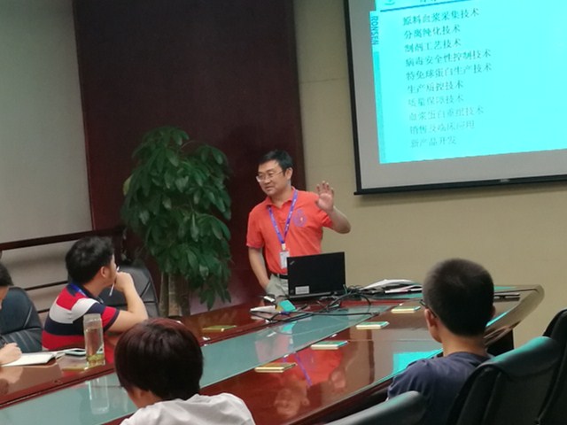 吳強(qiáng)老師以深入淺出的講解方式,從原料血漿采集技術(shù)到質(zhì)量保證技術(shù)共十個版塊為大家逐一梳理了血液制品的生產(chǎn)過程,讓廣大青年團(tuán)員對血制產(chǎn)品生產(chǎn)工藝流程有了系統(tǒng)、全面的認(rèn)識。此次培訓(xùn),吳強(qiáng)老師還將公司未來的發(fā)展規(guī)劃和目前新產(chǎn)品的研發(fā)進(jìn)度一一分享給了在座的青年團(tuán)員們,使大家對公司的快速發(fā)展充滿了信心,同時也激發(fā)了大家愛崗敬業(yè)的工作熱情。