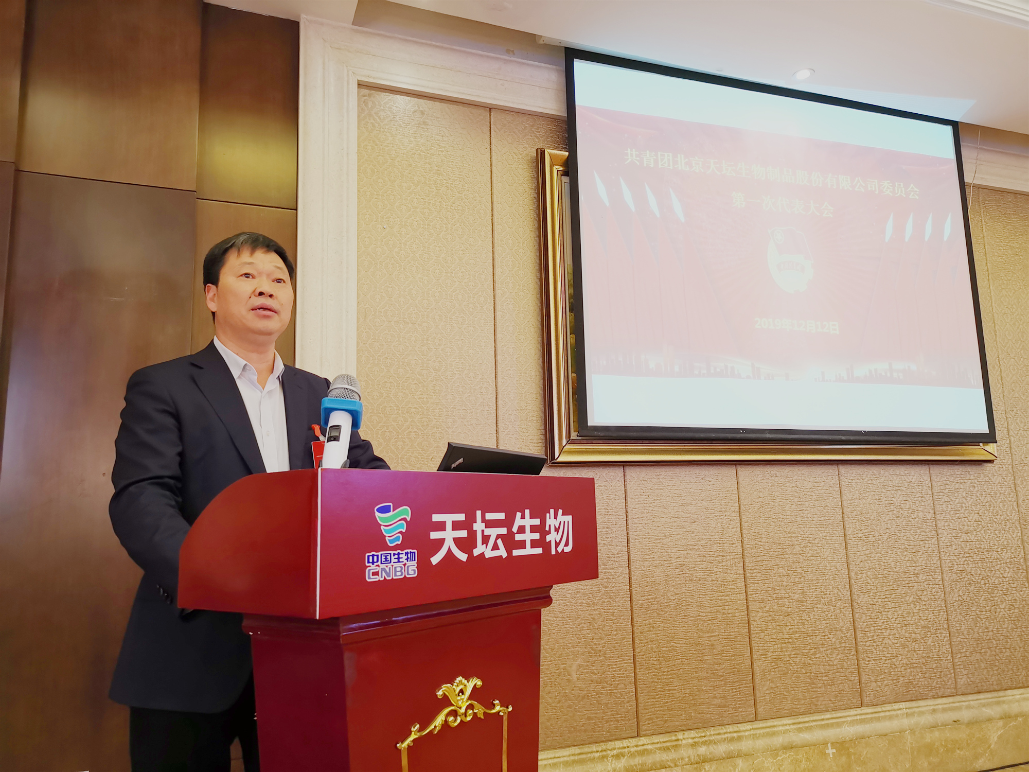 天壇生物黨委書記、總經(jīng)理付道興代表公司黨委向長期以來關心和支持天壇生物共青團工作的中國生物各級領導表示誠摯的感謝!向全體與會代表和廣大團員青年致以親切的問候!同時,對共青團和青年工作提出了三點希望和要求:一是堅持以習近平新時代中國特色社會主義思想為指引,不斷增強使命責任。二是以全面從嚴治黨引領全面從嚴治團,發(fā)揮好黨的助手和后備軍作用。三是堅持圍繞中心服務大局的工作主線,不斷提升業(yè)務技能。